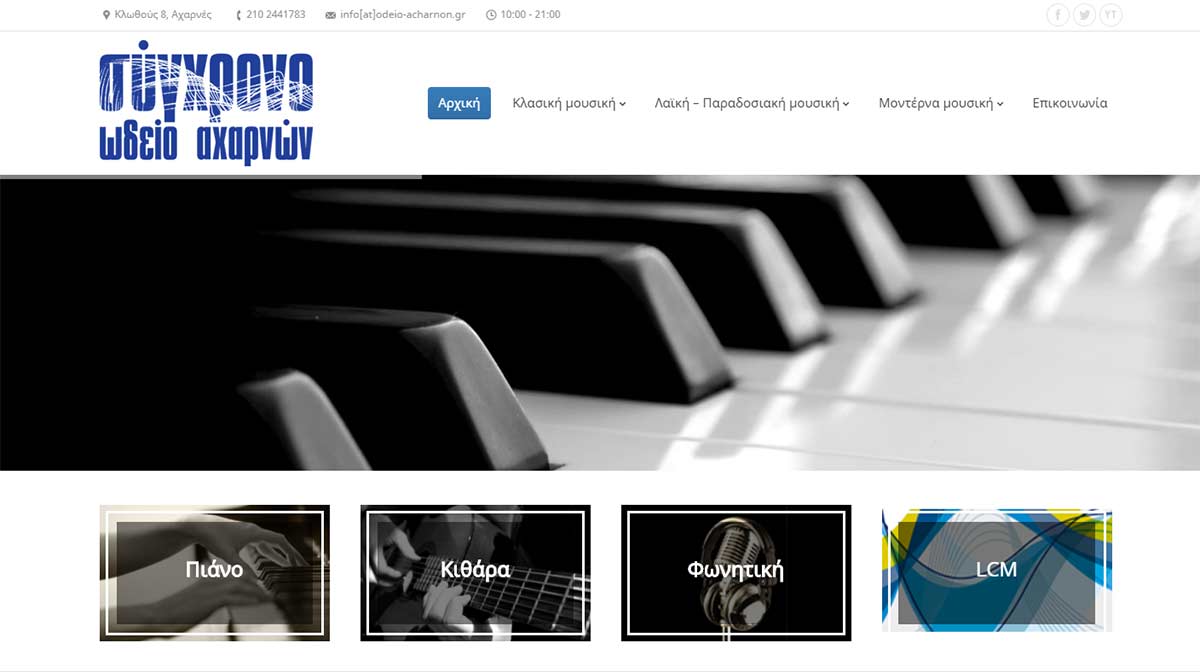 Είμαστε περήφανοι για τη δημιουργία του πλέον σύγχρονου website για το πλέον… σύγχρονο ωδείο στην Αθήνα. Χρησιμοποιώντας υπηρεσίες CDN, έχουμε μετατρέψει το odeio-acharnon.gr σε πραγματικό «πύραυλο». Το καθαρό και responsive design του, σε συνδυασμό με τις εξειδικευμένες τεχνικές SEO που εφαρμόσαμε, έχουν εκτοξεύσει τις εγγραφές μαθητών του Σύγχρονου Ωδείου Αχαρνών.